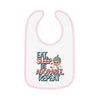 "Eat, sleep, be adorable, repeat" Baby Contrast Trim Jersey BibRegular price $18.93